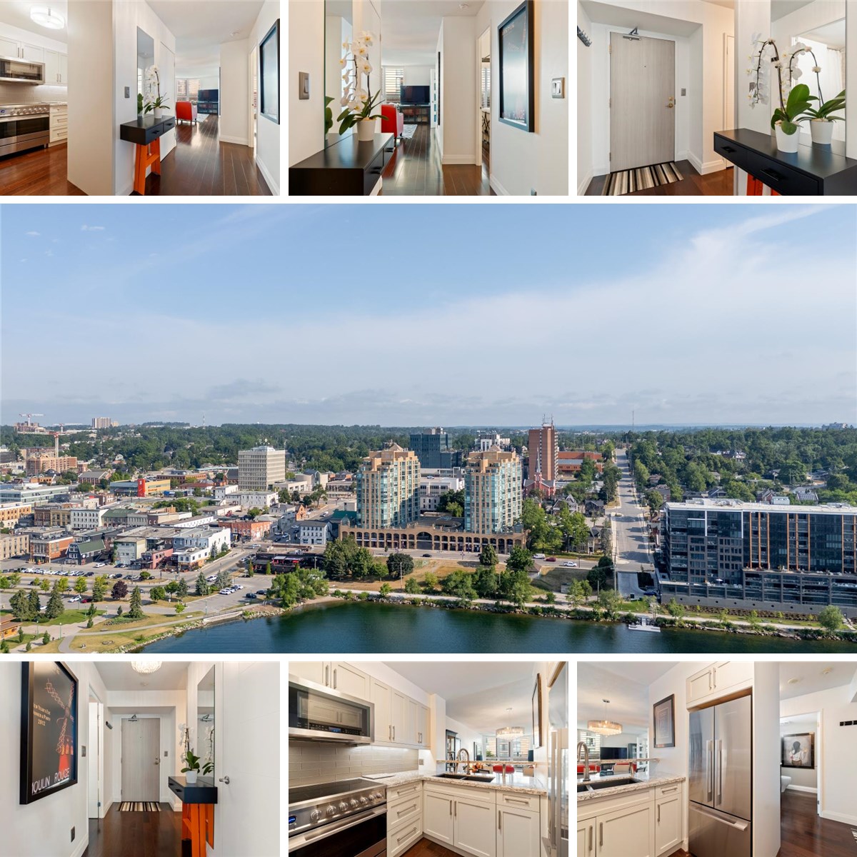 Absolutely Stunning One Bedroom Plus Den Suite With Large Private Terrace is an Oasis You Can Barbecue On And Entertain Friends And Family. Lovely View Of Kempenfelt Bay And The City Lights. This Gorgeous Condo Has Been Fully Renovated And Upgraded. The Custom Kitchen Has Beautiful Cabinetry, Quartz Countertops, Full Sized Fridge, Fisher & Paykel Stove ($10,000 Value). There Is Sumptuous Engineered Hardwood Flooring Throughout, modern Baseboards And Custom Doors By Barrie Trim and Moulding Including 2 Sets of Contemporary French doors, Upscale Closets And Doors. Spa Like Bathroom Is A Relaxing Upgraded Space With Modern Flooring, Vanity and TOTO Toilet. All Windows Have California Shutters, Providing Elegance and Privacy. Enjoy Your Built in Sound System. There Is One Parking Space And a 2nd Rental one Available. Condo Fees Include Heat, Hydro, Water, And Use Of Upgraded Pool, Sauna, Hot Tub, Party Room And Exercise Room